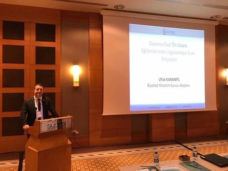 Biyoted yönetim kurulu başkanı Ufuk KARANFİL " Biyomedikal ön lisans eğitiminde uygulamaya esas ihtiyaçlar" konulu sunumunu gerçekleştirdi.
