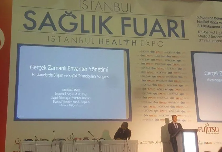 İstanbul Cnr Expo'da düzenlenen Sadefe Bütünleşik Sağlık Kongresi 1 Aralık 2017 Cuma "Hastanelerde Bilişim ve Sağlık Teknolojileri" programı kapsamında İstanbul İl Sağlık Müdürü Prof. Dr. Kemal MEMİŞOĞLU'nun oturum başkanlığında BİYOTED yönetim kurulu başkanı Ufuk KARANFİL "Gerçek Zamanlı Envanter Yönetimi" konulu sunumunu gerçekleştirdi.